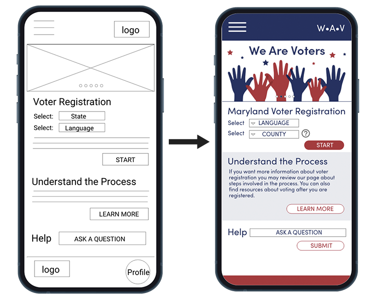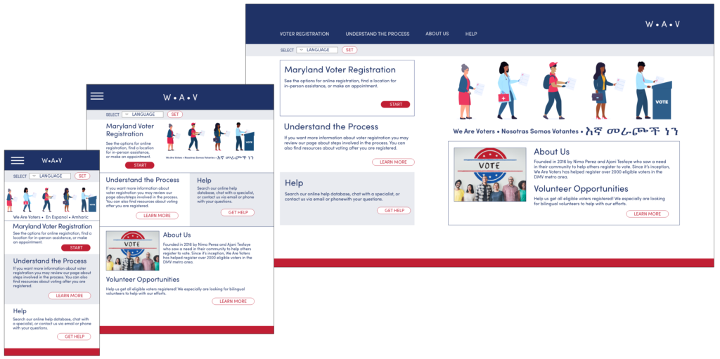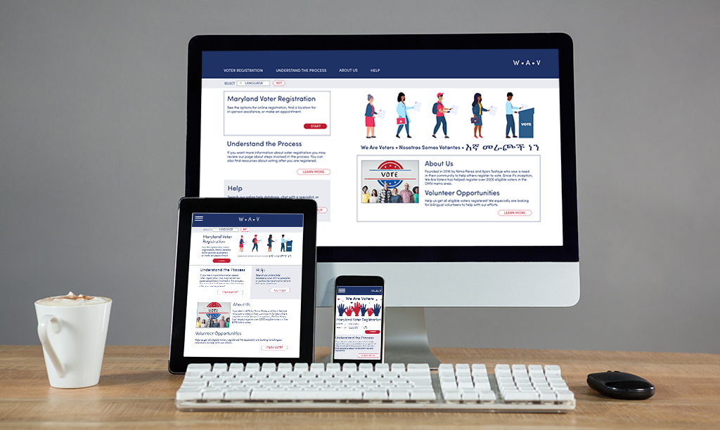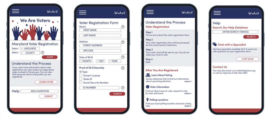Project goal: Design a dedicated mobile app and corresponding responsive website to make it easier for first generation immigrants in my community (southern Montgomery County, MD) to register to vote.